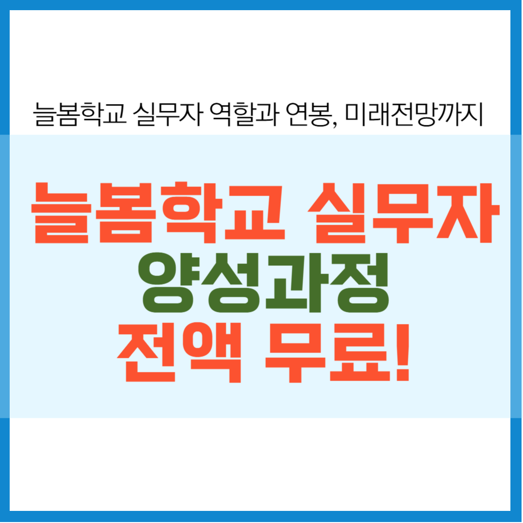 늘봄학교 실무자 양성과정은 단순한 기술교육이 아니라 미래 교육현장에서 활동할 실무 전문가로 성장할 수 있는 첫걸음입니다. 무료 교육, 실습, 자격증, 수당, 취업 연계까지! 지금 이 기회를 절대 놓치지 마세요