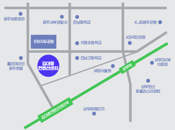 - 김대중컨벤션센터(마륵)역 하차 후 5번출구로 나와서 직진(3분소요)